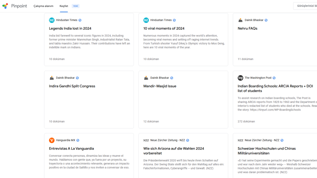 Google, 2020 yılında tanıtımını yaptığı Gazeteci Stüdyosu içerisinde yer alan Pinpoint aracını geliştirmeye devam ediyor. Bu yeni güncellemelerle yağlı zeka özellikleri, gazetecilerin işlerini daha verimli yapmalarına yardımcı oluyordu.